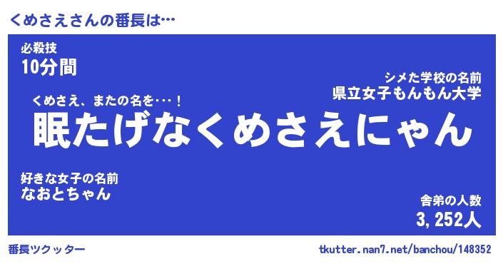 | ヘコむあだ名 | 『くめにゅー』『なまこ酢』 |