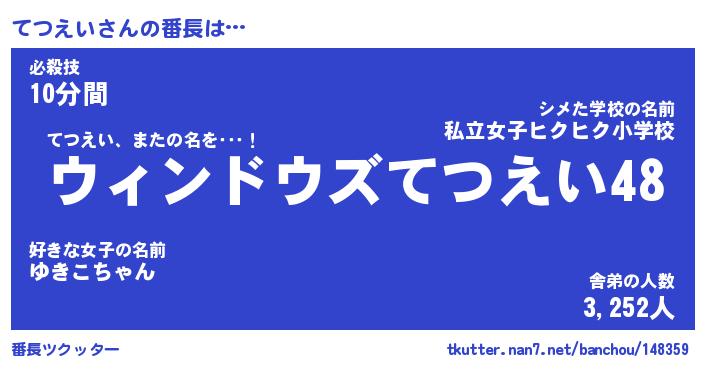 | 意味不明あだ名 | 『ペロリンてつえい』『永久保存てつえい』 |