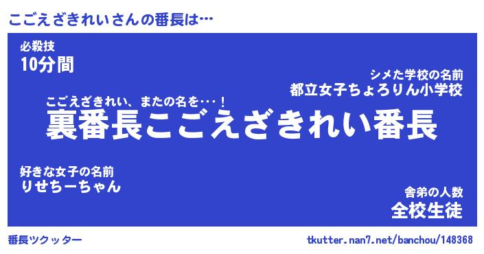 | ヒーロー風カッコイイあだ名 | 『スーパーコゴエザキレイ』 |