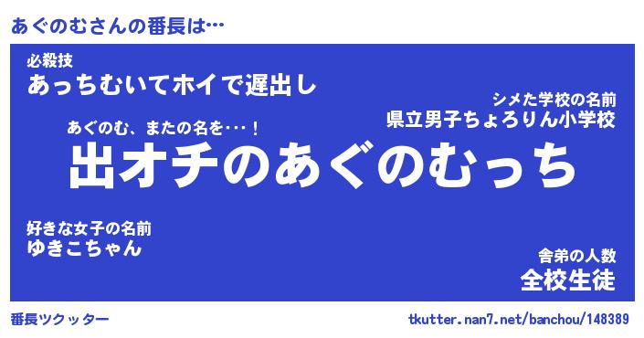 | 欧米人風あだ名 | 『マイケルあぐのむ』『ウサインあぐのむ』 |