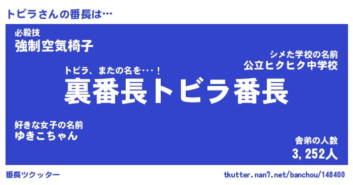 | ヒーロー風カッコイイあだ名 | 『スーパートビラ』『ウルトラトビラマン』 |