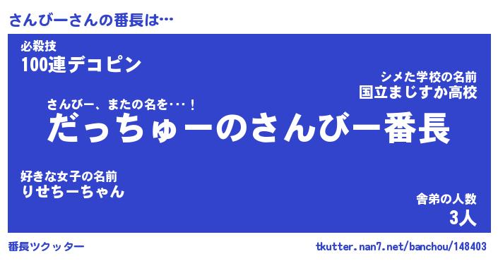 | 意味不明あだ名 | 『ペロリンさんびー』『永久保存さんびー』 |