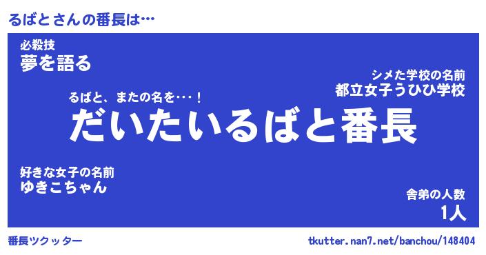| ヘコむあだ名 | 『るばにー』『豆乳』『るばっちょ』 |