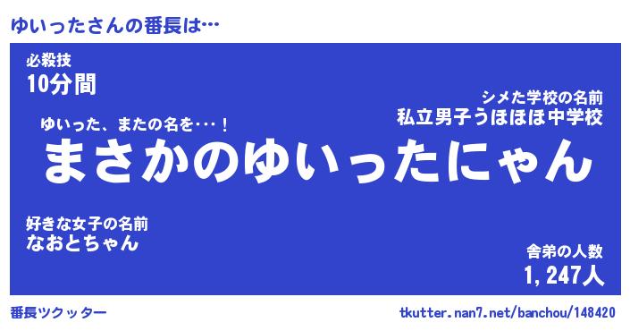 | 意味不明あだ名 | 『ペロリンゆいった』『永久保存ゆいった』 |