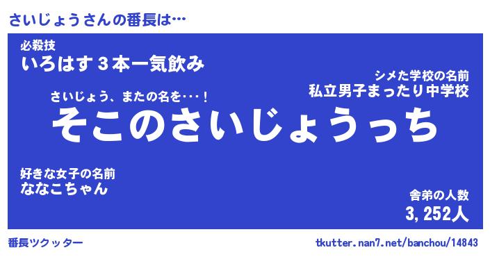 | 男性向けラノベタイトル風あだ名 | 『さいじょうの憂鬱』 |