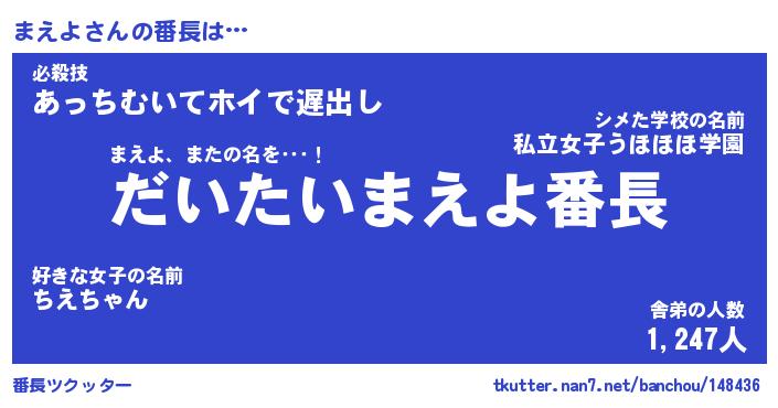 | 2回繰り返すあだ名 | 『まえまえ』『ままええ』『ぶすぶす』 |
