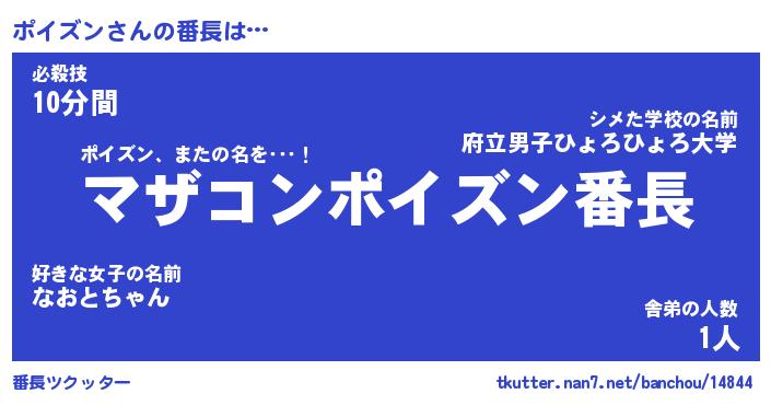 | 意味不明あだ名 | 『ペロリンポイズン』『永久保存ポイズン』 |