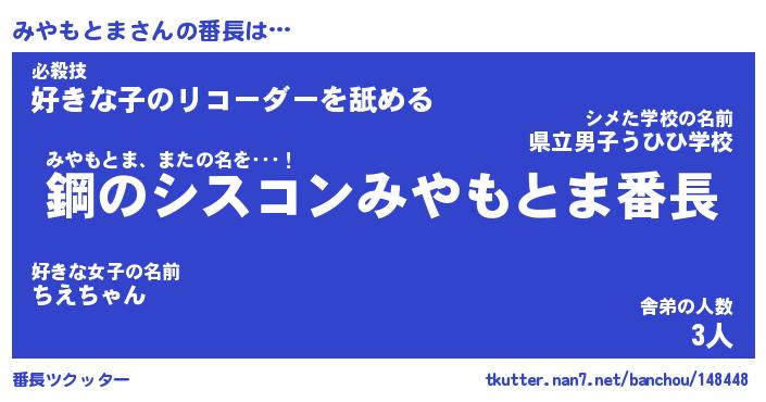 | 伝説のあだ名 | 『封印されしスナイパーみやもとま』 |