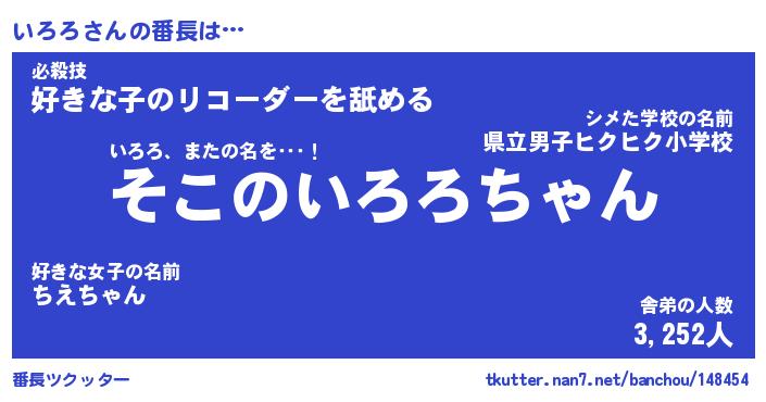 | 意味不明あだ名 | 『ペロリンいろろ』『いろろフォーエバー』 |