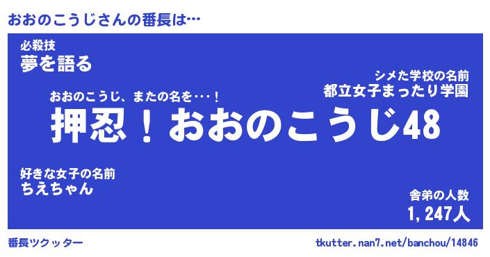 | ヒーロー風カッコイイあだ名 | 『スーパーオオノコウジ』『魔戒騎士オオ』 |