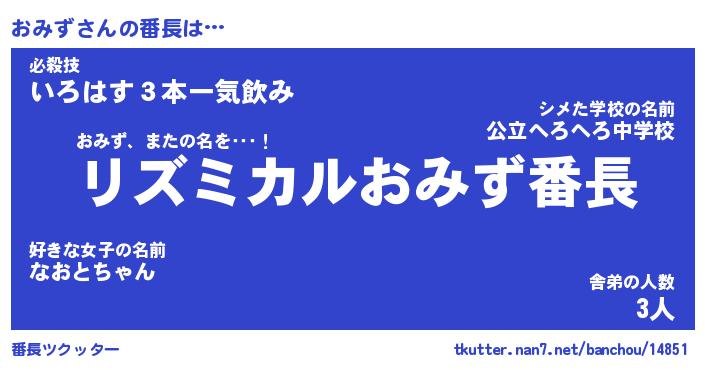 | 肩書あだ名 | 『おみず店長』『おみず大統領』 |