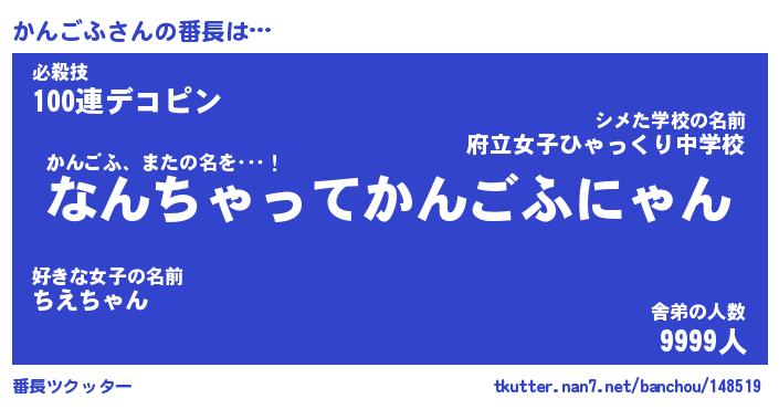 | ポケモン風あだ名 | 『カンチュウ』『カンゴダネ』 |