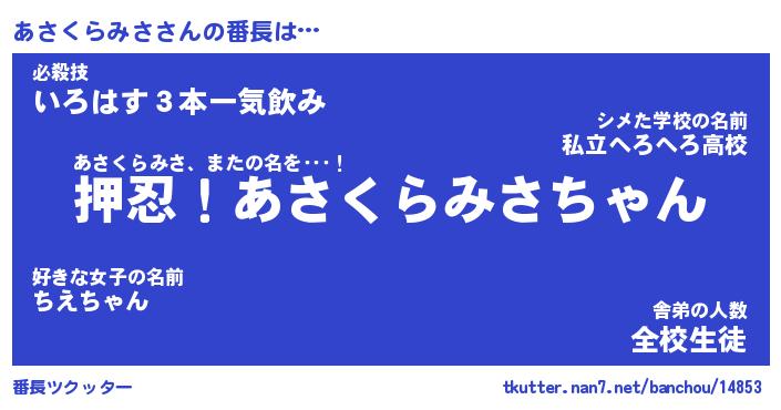 | 伝説のあだ名 | 『封印されしスナイパーあさくらみさ』 |