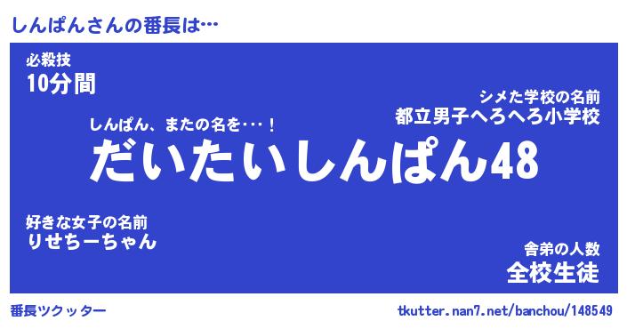 | 意味不明あだ名 | 『ペロリンしんぱん』『永久保存しんぱん』 |