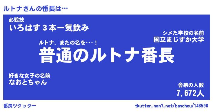 | ヘコむあだ名 | 『ルトもー』『なまこ酢』『ルト太郎』 |