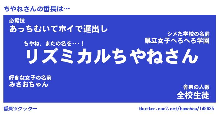 | ファンタジー風あだ名 | 『チヤフェル』『エターナルチヤネー』 |