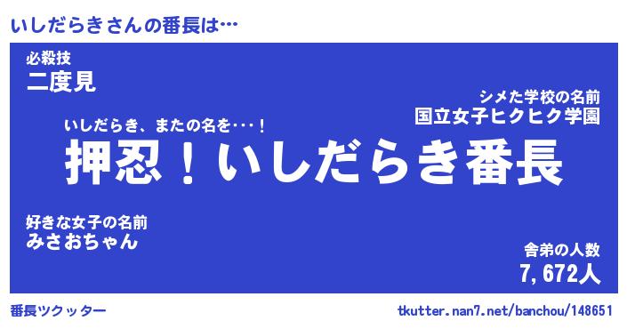 | ピコ太郎風あだ名 | 『イコ四郎』『ピイ二郎』『イシ次郎』 |