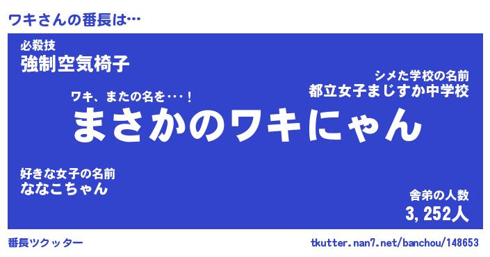 | ピコ太郎風あだ名 | 『ワコ二郎』『ピワ六郎』『ワキ四郎』 |