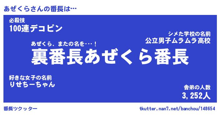| 伝説のあだ名 | 『不死鳥のスナイパーあぜくら』 |