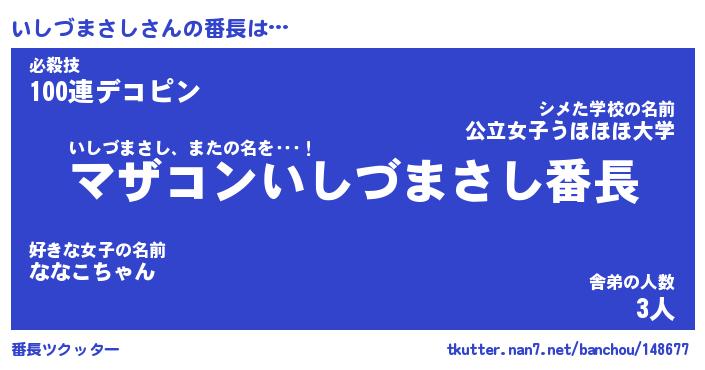 | 伝説のあだ名 | 『封印されしスナイパーいしづまさし』 |