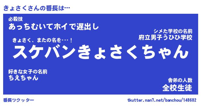 | ファンタジー風あだ名 | 『キョフェル』『エターナルキョサクー』 |