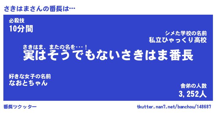 | 肩書あだ名 | 『さきはま店長』『さきはま総理大臣』 |