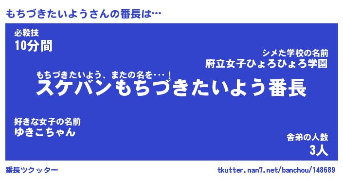 | ヘコむあだ名 | 『もちもー』『牛乳』『もち太郎』 |