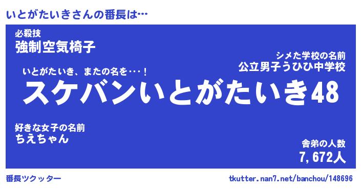 | ピコ太郎風あだ名 | 『イコ五郎』『ピイ一郎』『イト四郎』 |