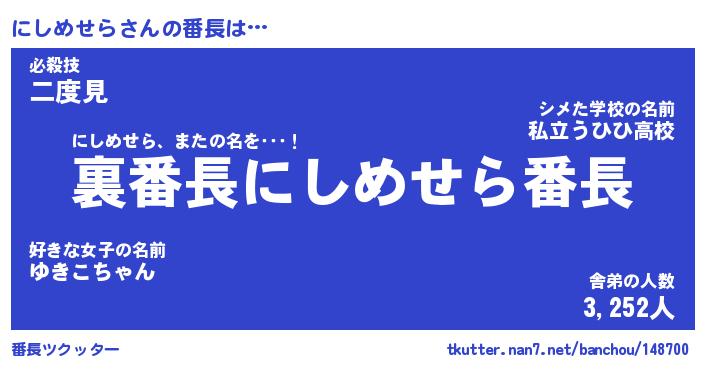 | 肩書あだ名 | 『にしめせらCEO』『にしめせら総理大臣』 |