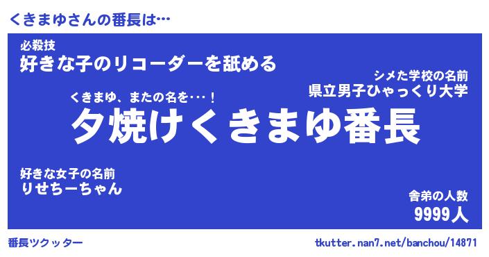 | ピコ太郎風あだ名 | 『クコ一郎』『ピク六郎』『クキ二郎』 |