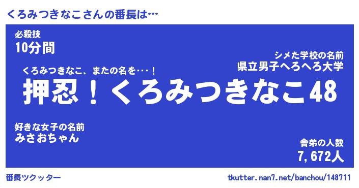 | ヘコむあだ名 | 『くろふぇ~』『つくし』『くろ太郎』 |