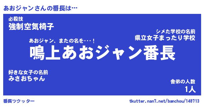 | 肩書あだ名 | 『あおジャンCEO』『あおジャン総理大臣』 |