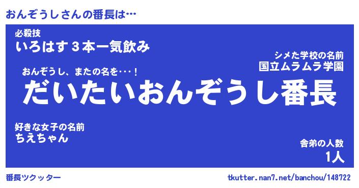 | 男性向けラノベタイトル風あだ名 | 『おんぞうしの憂鬱』 |