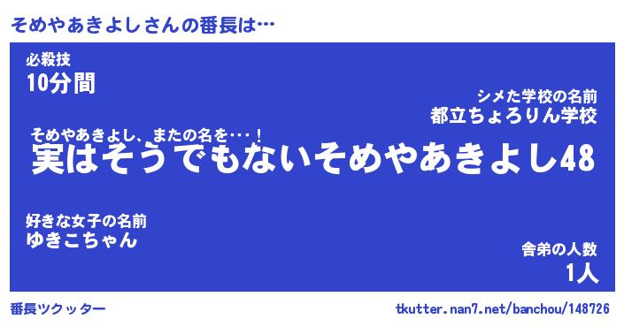 | ヒーロー風カッコイイあだ名 | 『スーパーソメヤアキヨシ』 |