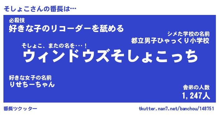 | 伝説のあだ名 | 『伝説のスナイパーそしょこ』 |