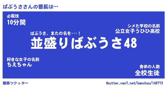 | 意味不明あだ名 | 『ペロリンばぶうさ』『永久保存ばぶうさ』 |