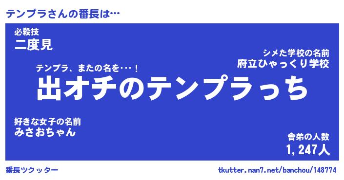 | ヒーロー風カッコイイあだ名 | 『スーパーテンプラ』『暗黒騎士テン』 |