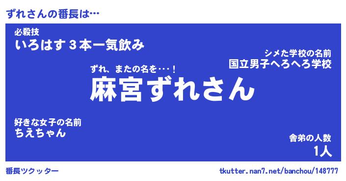 | 2回繰り返すあだ名 | 『ずれずれ』『ずずれれ』『あんあん』 |