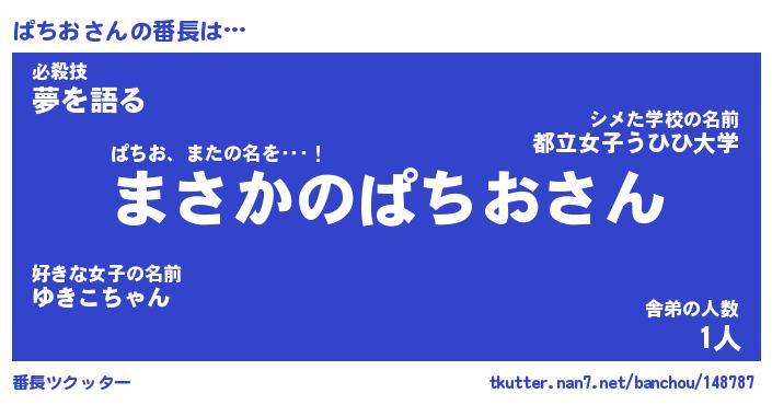 | ヒーロー風カッコイイあだ名 | 『スーパーパチオ』『ウルトラぱちおマン』 |