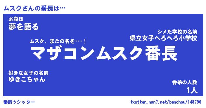 | 肩書あだ名 | 『ムスク店長』『ムスク国家主席』 |