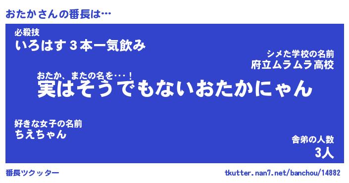 | ヘコむあだ名 | 『おたふぇ~』『なまこ酢』 |