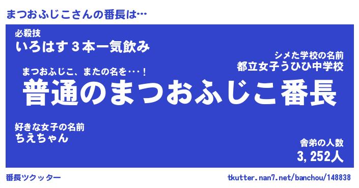 | 男性向けラノベタイトル風あだ名 | 『まつおふじこの憂鬱』 |