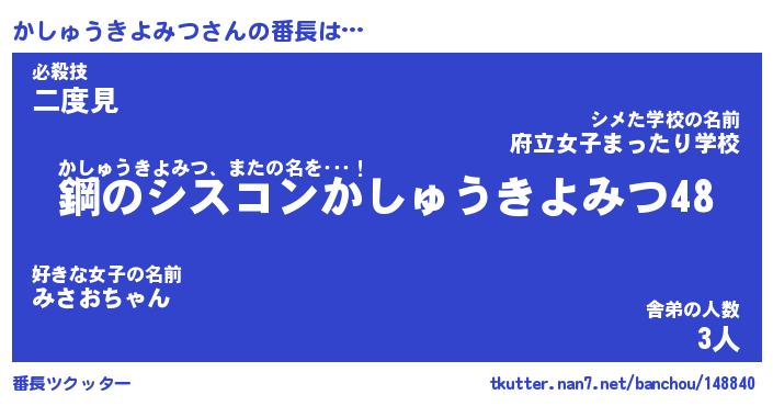 | 意味不明あだ名 | 『ペロリンかしゅうきよみつ』 |