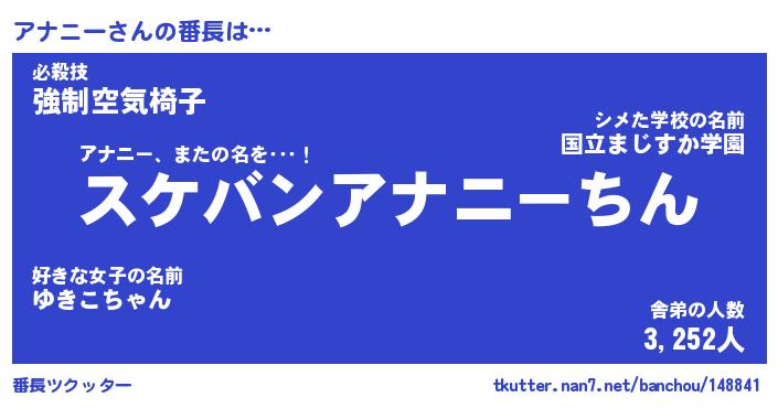 | 2回繰り返すあだ名 | 『アナアナ』『アアナナ』『うねうね』 |