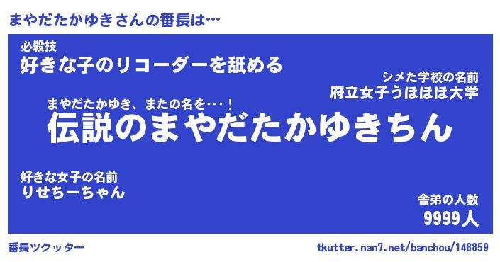 | 肩書あだ名 | 『まやだたかゆき店長』 |