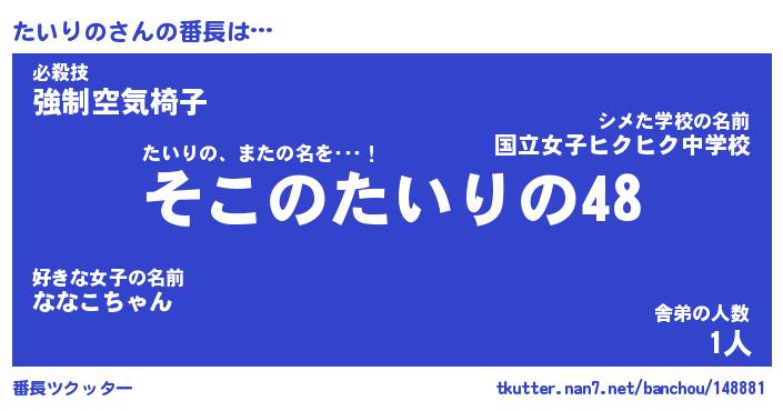 | 意味不明あだ名 | 『ペロリンたいりの』『永久保存たいりの』 |