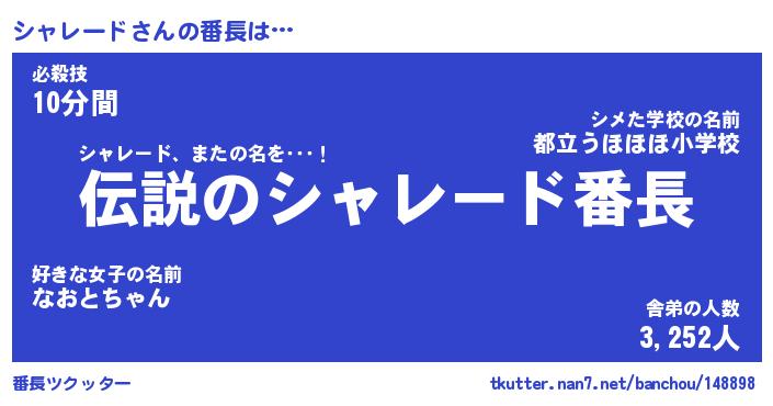 | ファンタジー風あだ名 | 『シャフェル』『エターナルシャレードー』 |