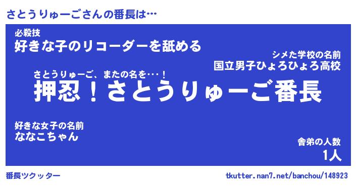 | 肩書あだ名 | 『さとうりゅーご御曹司』 |