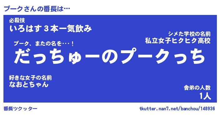 | 男性向けラノベタイトル風あだ名 | 『プークの憂鬱』 |