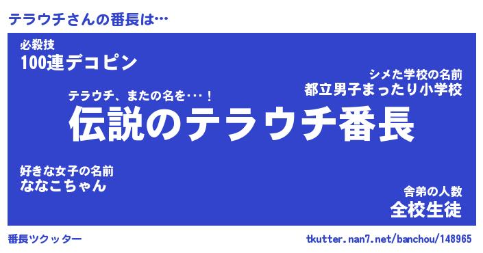 | 意味不明あだ名 | 『ペロリンテラウチ』『永久保存テラウチ』 |